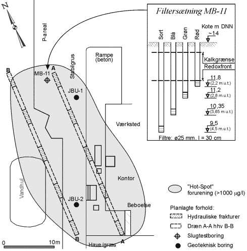 9,5 ). MB-11 er filtersat separat i 4 vertikale niveauer, idet denne boring blev anvendt
