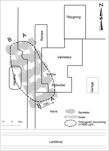 jf. afsnit 3.5, kunne forventes influens langs de frakturerede dræn.