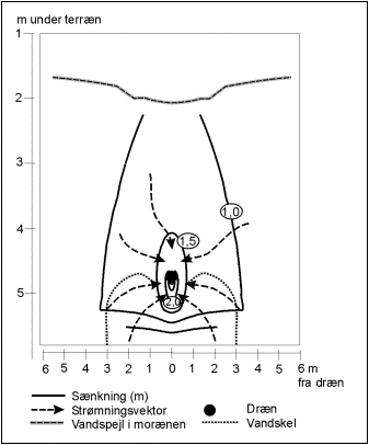afstand på 5 m fra drænene, svarende til den forventede afstand inden for hvilke der,
