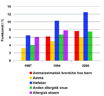 årstidsafhængig allergisk snue omtrent fordoblet. Der har været en tilsvarende