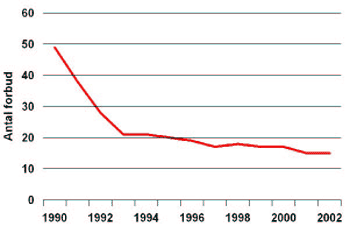 antallet af badeforbud nu kun udgør 1/3 af niveauet i 1990.