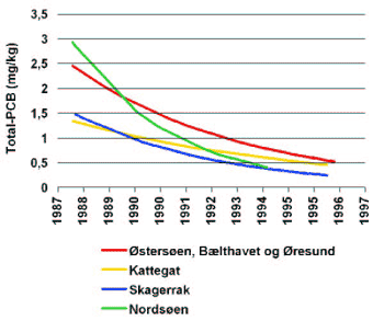 indholdet af PCB i fisk generelt. I 1980'erne blev der i Europa indført restriktioner på