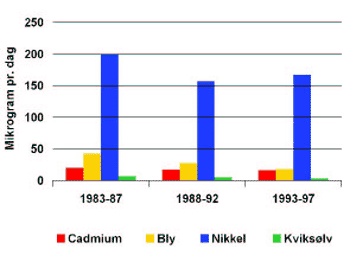 nikkel samt indtaget heraf har været fulgt siden 1984. Overvågningen har omfattet alle