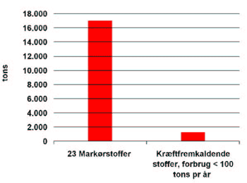 Kræftfremkaldende stoffer anvendes i dag erhvervsmæssigt i mængder over 100 tons