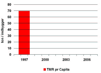 TMR1997 for Danmark er opgjort til 70 tons pr. capita. Tallet bygger på data fra 1997,