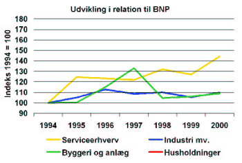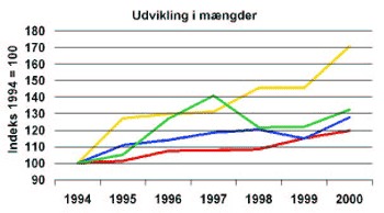 affaldsmængden i perioden 1994-2000 er steget med 20% og af serviceerhvervene, hvor