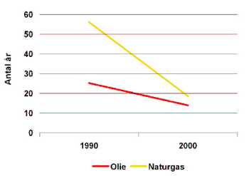 produktionen steget, hvorfor kurverne viser en nedadgående tendens. De samlede reserver