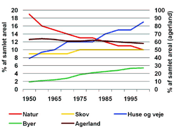 Danmark er et af de lande, hvor arealet udnyttes mest intensivt. Det samlede