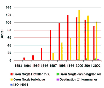 Fra 1993-2000 steg antallet af miljøcertificerede turistvirksomheder inden for især