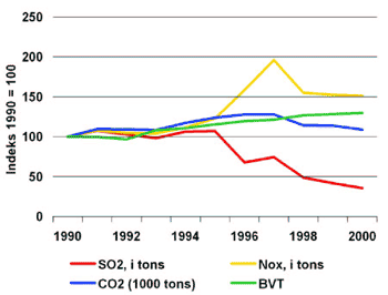 og NOX udledningerne med stigningen i BVT i slutningen af 1990´erne, er der en