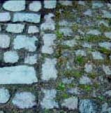 Børstede og ubørstede brosten på Christiansborg Ridebane.