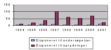 2001 på 132 ansøgninger til oprydningsprojekter svarende til et samlet beløb på 95,3