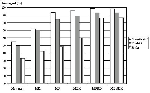 stof, kvælstof og fosfor. Den procentvise reduktion af organisk stof, kvælstof og fosfor