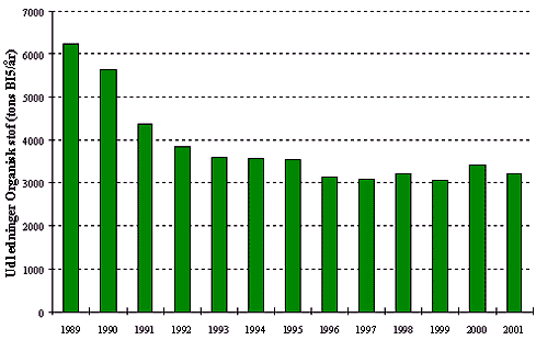 Den samlede udledning fra dambrug er i 2001 opgjort til 3.210 tons organisk stof målt