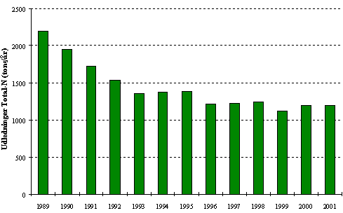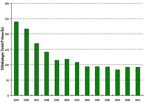 som BI5 , 1.197 tons kvælstof og 91 tons fosfor. Udledningen af de tre stoffer