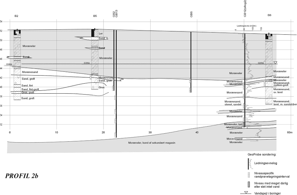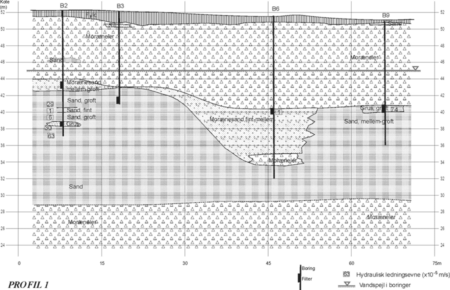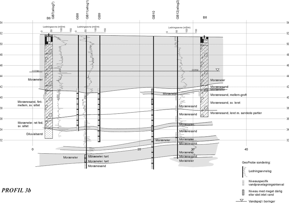 Figur 9.3 Lokale, geologiske profiler 1-3