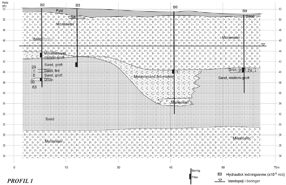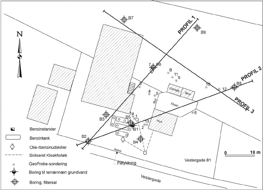 Figur 9.3 Placering af lokale geologiske profilsnit