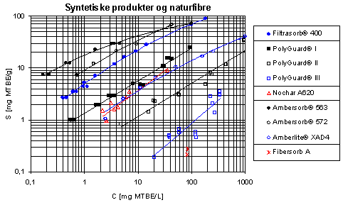 der ligeledes er beregnet MTBE-sorptionskapaciteter ved hhv. 1 og 10 mg/L.