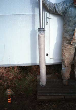 sæk blev tømt direkte ud i den reaktive væg efter forudgående ophængning i kæde på