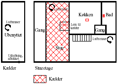 Indeklimamåling og måling under gulv kort tidsmålinger Tilsyn og monitering: Udført. Dokumentation ved IK og MP. Målingerne er udført henholdsvis før opstart (2 målerunder) og under drift efter 3 og 9 måneder. Ingen driftsjusteringer efter opstart. Der er ikke udført yderligere målinger eller monitering. Fremtidig. Der udføres kontrol tilsyn for at se om pumpen kører ca. hver 6. måned. Der er ikke planlagt yderligere tilsyn eller monitering. Tid: Før indsats. Anlægget etableret 2 måneder efter det blev vurderet at påvirkningen var uacceptabel. Anlæg. Etablering - 1 uge Drift. Opstart maj 1997, fortsat i drift (juni 2002). Økonomi: Etablering. 30.000 kr. ekskl. moms. Drift. 1.500 kr. ekskl. moms, pr. år. Monitering (1. driftsår). 8.000 kr. ekskl. moms. __________________________________________________ Sammenfattende vurdering: Anlægget har kørt med et enkelt driftsstop. Ventilatorens afbryder var i starten monteret på et "brugerpanel" opsat på skunkvæggens inderside (i boligen). Ved en fejl var anlægget blevet slukket af husets beboere. Afbryderen er derfor efterfølgende demonteret. Omdrejningsregulatoren var/er ligeledes monteret i boligen hvorved ukyndige har nem adgang til at ændre på den forindstillede ventilation. Ventilatoren har et bredt arbejdsområde (100 - 600 m³/h), hvorfor luftskiftet kan varierer meget markant hvis der ændres på indstillingen (7.000 - 40.000 gange pr. år). Samtidig bør det bemærkes at et luftskifte i størrelsesordenen 5.000-10.000 gange pr. år ofte er tilstrækkeligt. Regulatorens montage er fortsat uændret, hvorfor den vurderinger omkring forhold som opnået afværgeeffekt, risici vedrørende råd i gulvkonstruktionen, strømforbrug osv. er behæftet med stor usikkerhed. Det overvejes derfor at ændre montagen så regulatoren monteres eksempelvis inde i skunken ved pumpen. Beboerne i ejendommen har udtrykt meget stor tilfredshed med foranstaltningen, der tilsyneladende ud over den målbare effekt i forureningsindholdet også har haft en stor psykologisk effekt, hvor beboerne føler sig trygge. Beboerne har ikke påklaget negative effekter som træk og fodkulde. Byggetekniske forhold som f.eks. eventuelt begyndende råddannelse i gulvkonstruktionen er ikke undersøgt i driftsfasen. De byggetekniske sideeffekter er derfor ukendte. Dette overvejes dog gennemført. Ventilatorens montage i skunkrummet og den påmonterede lyddæmpning gør at anlægget er særdeles støjsvagt (ventilatoren kan ikke høres i boligen). Rørføringen fra ventilatoren til afkasthætten over taget er ført som synlige rør, hvilket i visse sager må forventes at kunne blive påklaget (visuel gene). Der kan i vindstille perioder være risiko for indsugning af afkastluft, da afkasthætten er placeret relativt tæt på boligens tagvindue. Det har været overvejet at udlægge en diffusionstæt membran mellem gulvtæpperne og trægulvene for derved at sikre et ensartet undertryk under gulvet, hindre trækgener og for at minimere risikoen for råddannelse. Generne under etableringen er dog vurderet større end risikoen ved at undlade membranen. Indbygning er derfor undladt. For en nærmere beskrivelse af ovennævnte problemstillinger henvises til DB-9, der overordnet beskriver teknikken "aktiv ventilation af krybekældre". Foranstaltningen er generelt hurtig og billig at etablere og ventilationen kan nemt demonteres og genanvendes senere. Den valgte monitering vurderes at kunne begrænses til enten IK eller MP og samtidig være fuldt tilstrækkelig for overvågning af anlægget. Bilag: Fotos. Ejendommen og afkasthætte. Illustration af hvordan afkast