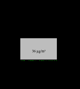Figur 2: Tid: Før indsats. Anlægget er idriftsat 18 måneder efter at forureningen er påvist og afværge er skønnet nødvendig. Anlægsperiode. ½ dag, under forudsætning af at luftrenseenhederne er leveret. Alternativt skal der påregnes ca. 3 ugers leveringstid. Drift. Opstart, oktober 2001. Økonomi: Etablering. 30.000 kr. (for 3 stk. luftrensere (LR2)). Udført monitering. 46.000 kr. (4 målerunder med IK og UL). (I henhold til anbefalet monitering, jf. datablad DB-6, er der således udført målinger før opstart af afværge samt efter 1 og 2 måneders drift). Drift. 9.000 kr. årligt (inkl. én udskiftning af støv- og kulfiltre). ____________________________________________ Samlet vurdering: Afværgen har kørt uden tekniske driftstop, dog har anlægget ved en fejl været slukket i en periode på ca. 1 uge under måleperiode under drift. På baggrund af denne erfaring anbefales det, at udforme installationen således at beboere eller andre ikke kan slukke for anlægget ved et uheld. Den indbyggede timetæller kan registrere den aktuelle driftstid. Afværgen med installation af luftrensere er et hurtigt, fleksibelt, billigt og relativ effektivt tiltag. Endvidere kan luftrenseenhederne relativt nemt integreres i et eksisterende møblement. For den aktuelle lokalitet har beboeren udtrykt, at luftrenseenhederne optager megen plads, hvorfor det skal bemærkes, at afværgen kan virke pladskrævende i en mindre beboelse. Som udgangspunkt bør luftrenseren (LR2, 95-229 m3/t) af støjhensyn, ikke opstilles i beboelseslokaler. Ved en kapacitet på ca. 114 m3/t er støjniveauet for én luftrenseenhed, i 1 meters afstand, målt til 39 dB(A). Alternativt kan der opstilles mindre enheder (LR1, 34-95 m3/t), hvilket forventeligt vil medføre en mindre reduktion af indeklimapåvirkningen. På den aktuelle lokalitet har støj fra luftrenseenhederne ikke udgjort en væsentlig gene/irritation for beboeren. Den aktuelle afværge, med opstilling af luftrensere i stue- og kælderetagen, har haft til formål at reducere indeklimapåvirkningen fra den underliggende poreluft- og grundvandsforurening. På den aktuelle lokalitet vurderes en del af indeklimabidraget til stueetagen at stamme fra en poreluft- og grundvandsforurening, som er beliggende under den østlige del af bygningen, hvor der ikke er kælder. Ved opstilling af en luftrenser i kælderetagen har det således kun været praktisk muligt at reducere den del af stuens indeklimabidrag, som stammer fra den underliggende kælderetage. Bilag: Fotos. Ejendommen, luftrensere opstillet i hhv. kælder- og stueetage.