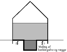 DB-2:Maling af kælderFunktion: Ved at etablere en forbedret tætning af kældergulve og -vægge reduceres den diffusive og konvektive indtrængning af forurenet poreluft til kælderen. Derved reduceres forureningspotentialet for spredning gennem kælderloft/trappeopgang til de overliggende etager. Det er en forudsætning at både gulve og vægge er i relativt god stand og ikke er påvirket af væsentlig fugtindtrængning, da dette kan vanskeliggøre behandlingen. Foranstaltningen udføres i ejendomme hvor gulvene eksempelvis er præget af betydende svindrevner pga. for hurtig afhærdning under udstøbning o. lign. Metoden anvendes typisk i ejendomme hvor kælderen alene udgør en mindre del af det bebyggede areal og hvor gulvene i kælderen er i dårligere stand end de øvrige gulve. Metoden kan dog også anvendes i ejendomme med fuld kælder og her typisk i det tilfælde hvor ventilation af kælderen (som eneste tiltag) ikke vurderes at have tilstrækkelig effekt (eksempelvis en "åben kælder"). Maling af kældergulve og -vægge er et oplagt alternativ til den mere radikale løsning hvor der foretages en udskiftning af gulvene. Metoden kan anvendes som en permanent særskilt afværge overfor ejendomme, der er påvirket i mindre til moderat grad og uden udeluftspåvirkning. Ved metoden foregår ingen kildefjernelse. Anlægsbeskrivelse: Generelt påføres både gulve og vægge en diffusionshæmmende epoxybaseret maling. Forinden foretages klargøring i nødvendig omfang (gulve, vægge og alle grænseflader mellem disse). Ved sammenligning med teknikken "udskiftning af gulve" udføres tiltaget uden stabilitetsmæssige risici og uden ændring af eksisterende frihøjde, hvilket i visse tilfælde kan være af afgørende betydning for tilvalg af metoden. Gulve. Den eksisterende gulvbelægning rengøres, oftest ved slibning med karborundumsliber eller lignende og støvsugning. Eventuelle skader udbedres ved pudsning af gulvet. Herefter grundes gulvfladen med epoxycementmørtel og påføres ca. 2 mm belægning med tandspatel (epoxycementmørtel) over hele gulvets overflade (afhærdningstid ca. 36 timer). Afslutningsvis påføres 2 lag vandbaseret epoxymaling. Vægge. Behandling af kældervæggene udføres sædvanligvis i kældervæggens fulde højde. I ældre ejendomme er indervæggene ofte kalkpudsede. For at opnå optimal vedhæftningsevne for den diffusionshæmmende maling fjernes pudsen og evt. løse fuger fjernes hvorefter væggen afvaskes. Fuger efterfyldes og væggen spartles med en tæt epoxycement. Væggen topcoates til sidst med 2 lag vandbaseret epoxymaling. Ved fugt i vægge kan indtrængning hindres ved en indledningsvis coatning af kældervæggende (vandtætning). En sådan tætning er dog behæftet med en vis risiko for optrængning af fugt i overliggende konstruktioner og dermed risiko for råddannelse i eksempelvis overliggende trægulvkonstruktioner mv. Den samlede hærdningstid for behandlingen, gældende for både vægge og gulve, er ca. 14 dage. Hærdningsprocessen er dog meget temperaturafhængig, hvor en lav rumtemperatur vil forlænge hærdningstiden væsentligt. Det anbefales at behandlingen foretages under temperaturforhold på mellem 15-20 o C, og frarådes udenfor intervallet 10- 35 o C. Foranstaltningen har en levetid på maks. 10 år (svarende til slidgaranti i gangarealer) forudsat at gulve og vægge ikke udsættes for væsentlige fugtpåvirkninger (indtrængning af jordfugt) og at overfladen ikke lider fysisk overlast/beskadiges ud over almindelig slid. Metoden er ikke tidligere anvendt som eneste foranstaltning. Effekt: Afværgen har effekt umiddelbart efter anlægsarbejdet er afsluttet. Ved tætning med diffusionshæmmende maling kan ikke påregnes 100 % tætning. Der vil derfor fortsat ske en mindre diffusion gennem den samlede flade og evt. i samlinger mv. hvor overfladen evt. ikke er tætnet efter forskriften. Der vurderes at kunne opnås reduktioner i indeklimapåvirkningen på 30-50 %. Der foreligger ingen praktiske erfaringer med foranstaltningen, hvor det har været muligt at foretage en særskilt vurdering af effekten af at male kældergulve og -vægge med diffusionshæmmende maling. Effekten af tiltaget er derfor vurderet udfra teoretiske betragtninger og praktiske erfaringer med sammenlignelige afværgetiltag. Vurderingen er behæftet med særdeles stor usikkerhed.