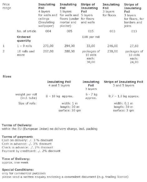 Instruction for useValutect©Insulating Wallpaper for walls and ceilings Data: