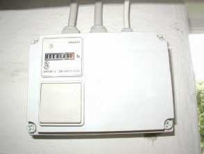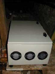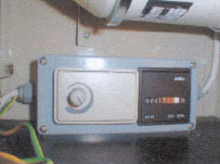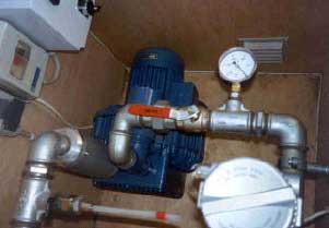 Kontrolboks med omdrejningsregulator og manometer, monteret i bryggers
