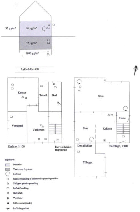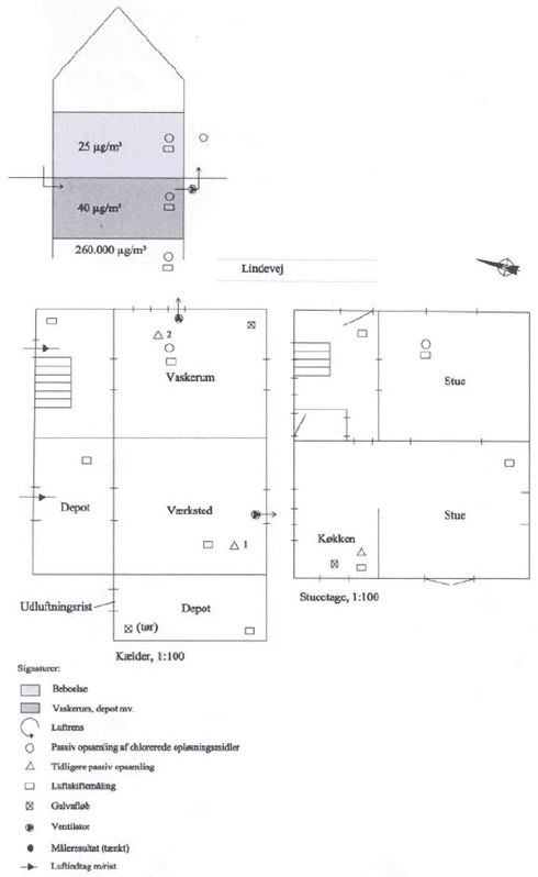 Anlægget har været testet og afprøvet på en del lokaliteter. På nedenstående figur er resultater fra 4 forskellige lokaliteter vist, hvor den ene søjle repræsenterer koncentrationen før ventrilering og den anden efter 2 - 4 ugers ventilering. På alle lokaliteter er forureningskoncentrationen nedbragt betydeligt og efter 1 - 6 måneder er miljøministeriets afdampningskriterium for indeklima opnået.