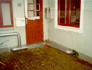 Overjordisk rørføring (passage v. hoveddøren)