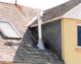 Afkastrør og ventilator ført under tag