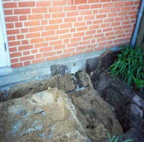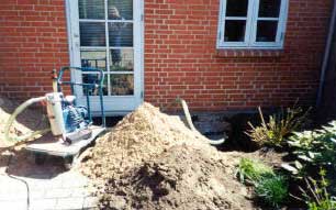 Frigravning af fundament (installation af dræn)