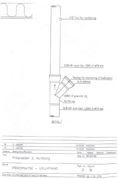Afkastrør fra ventilationsdræn samt luftindtag