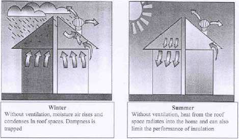 Heat and moisture in roof spaces can effect personal comfort levels in the home and the condition of the roof timbers.