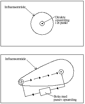 Figuren illustrerer poreluftmålingens influensområde ved den traditionelle og den