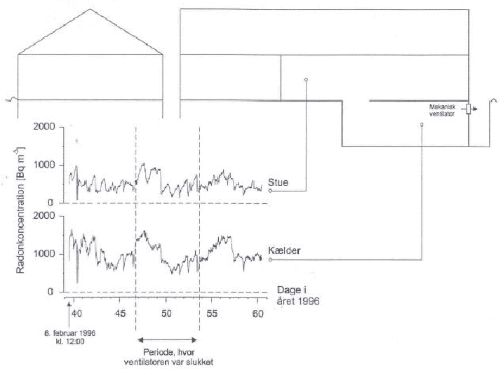 kælderetage, bevirker, at effekten af den mekaniske ventilation reduceres.