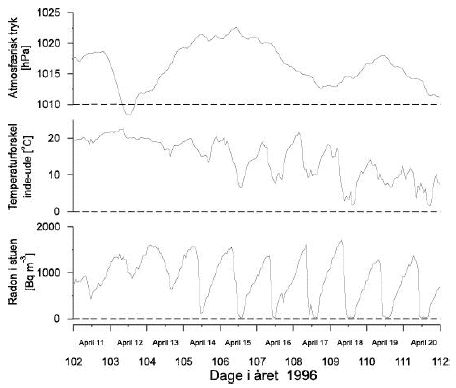 Ved eksempelvis logning af radonkoncentrationer i indeluften er ofte påvist variationer