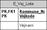 svarer til en entitet jævnfør det foranstillede E_, og at tabellen hedder Vej_Liste.