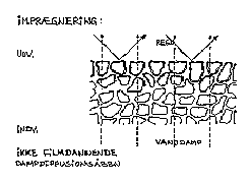 Imprægnering er den mest anvendte metode til forebyggelse af biologisk vækst. Professionelle rensefirmaer anbefaler typisk en imprægnering af lodret murværk efter afrensning af biologisk vækst. Imprægnering af tage er tilsyneladende også ved at blive mere almindeligt. Effekt For de nævnte imprægneringsmidler er det det samme slutprodukt, silikoneharpiks. Alkylgruppen i silikoneharpiksen giver den vandafvisende virkning. Silanmolekylerne reagerer i murværket eller tagstenen med vand. Herved afspaltes alkohol som fordamper. Under reaktionen bindes de enkelte silanmolekyler til hinanden og til porevæggene og danner slutproduktet silikoneharpiks. Ved at tilsætte en smule vand til silan starter reaktionen mellem silanmolekylerne, og oligomer-siloxan dannes. En oligomer-siloxan kan ses som et kompromis mellem silan og silikoneharpiks. Efter påførsel binder molekylerne sig til hinanden og til porevæggene. Ved reaktionen i materialet øges størrelsen samtidig med at molekylerne bindes til porevæggene. Reaktionen mellem de enkelte molekyler og porevæggene fortsætter, hvorved molekylenetværket øges samtidig med at molekylerne bindes til porevæggene. Der er forskel på de forskellige forbindelsers indtrængningsdybde, reaktionstid, krav til fugtindhold, alkalibestandighed mv. Valg af middel afhænger bl.a. af materialets alkalinitet, porøsitet, fugttilstand og hvor hurtigt man ønsker at opnå en vandafvisende effekt. For en mere detaljeret beskrivelse af de forskellige typer af imprægnering kan henvises til f.eks. Sandin [14]. Erfaringerne viser at de forskellige midler har stor vandafvisende virkning så længe de er intakte, men med tiden slides de eller nedbrydes af ozon og ultraviolet lys. Risici Overflader, der skal imprægneres, skal være hele og sunde og uden revner, ellers kan der lokalt ske stor indtrængning af vand. Imprægnering bør være så diffusionsåben som mulig. Hvis produktet ikke er tilstrækkeligt diffusionsåbent til den aktuelle konstruktion, risikeres at der ophobes vand bag imprægneringen, som kan forårsage frostsprængninger. Hvis materialerne har et højt indhold af opløselige salte kan udfældning af salte umiddelbart bag imprægneringen resultere i, at saltkrystallerne forårsager forvitring af materialerne, jf. [18]. 11.3 Oversigt over imprægneringsmidlerOversigten er ikke en fuldstændig oversigt over samtlige produkter der er på markedet, men blot en række eksempler på typisk anvendte produkter inden for de enkelte produkttyper. Der henvises til de enkelte leverandørers brugsanvisninger for præcise oplysninger om anvendelsesområde. Oversigt over imprægneringsmidler