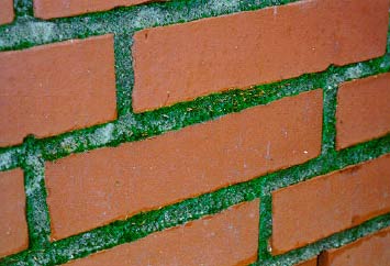 [29] Af tabellen fremgår, at de alger vi kan finde på murværk, tegl- og betontagsten tilhører luftalger, dvs. de spredes via luften. Det gælder både alger, der er fritvoksende på disse materialer og alger, der vokser i samliv med svampe som laver [29]. Jordalger er primære producenter af organisk stof og næringskilde for heterotrofe organismer. De har også en vigtig funktion ved at binde tørre partikler, tør jord, aske osv. sammen. Mosser og laver har en tilsvarende funktion [29]. Jordalger kan hæmme eller fremme væksten og udviklingen af andre auto- og heterotrofe organismer. Man kan bruge grønalger som bioindikator til analyse af effekten af plantebeskyttelsesmidler på jordens fertilitet. Kalkholdige alkaliske jorder er ofte mere artsrige end sure silikatholdige jorder (Reisigl 1964 efter Ettl & Gärtner, 1995). Tilsvarende kunne gælde for luftalger, når det gælder bevoksning på murværksmaterialer. I indeværende projekt har det dog ikke været muligt at undersøge hvorvidt der rent faktisk sker en succession. Det er sandsynligt, at algebevoksninger kan medvirke til at binde snavs. Det er endvidere hævdet, at algebevoksninger er et stigende problem forårsaget af forurening og at algebevoksninger skulle være særlig hyppige i forbindelse med landbrugsejendomme. Dette er dog ikke nærmere undersøgt i indeværende projekt. Laver er meget langsomt voksende organismer der vil kunne gro på såvel de relativt glatte flader som på meget ru flader. Nogle arter af laver er meget følsomme overfor svovldioxid (SO2 ), mens andre er særdeles tolerante. Derfor er en registrering af træers lavbevoksning en anvendt metode til bedømmelse af luftkvalitet. En forværring af luftkvaliteten vil hurtigt kunne konstateres ved denne metode, idet svovldioxid-følsomme arter vil dø i løbet af kort tid. Det kan derimod tage længere tid inden en forbedring af luftkvaliteten kan konstateres. Det kan tage op til flere år inden nye lavarter vokser frem på træerne. Bedømmelsen af luftkvaliteten sker typisk vha. en 9-punkts skala. Jo højere skala jo bedre luftkvalitet. Luftkvalitet 2 svarer til 65µg SO2/m3. Her kan lavarten Physcia tenella identificeres. Ved luftkvaliteten 3 svarende til 60 µg SO2/m3 kan lavarten Xanthoria parietina og Phaeophyscia orbicularis identificeres, [30]. De øvrige arter anvendt i skalaen er ikke identificeret i indeværende projekt. De er dog uvist, om de anvendte koncentrationer for svovldioxid kan anvendes ved fund af laverne på byggematerialer, idet i hvert fald kalkholdige materialer vil reagere med svovldioxiden. Mosser er meget synlige eller dominerende, når de vokser på tage og facader. På vertikale flader er det små, korte mosser, der dominerer mens der på tage kan vokse større og mere udbredte og buskformede mosser. Mosserne gror sjældent på glatte flader, men fæstner sig gerne på ru overflader, hvor der samtidig er en vandfælde