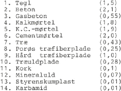 Figur 8.9: Nummerering samt materialernes relative densitet fremgår af følgende figur 8.10. Densiteten af hård træfiberplade er sat til 1,0 [35].