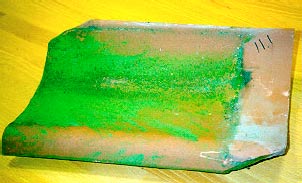 Figur 8.21: Følgende tabel 8.8 viser et overblik over oplysninger vedr. de teglsten, hvor fordampningshastigeheden er undersøgt. Stenene er ikke direkte sammenlignelige (bortset fra sten med samme nr. foran punktum), da der er forskel på materialesammensætning, porøsitet, alder og andre faktorer, der må forventes at have indflydelse på fordampningshastigheden. Data er sammenholdt med resultaterne afbildet i figur 8.14; 8.16; 8.18; og 8.20. Der synes ikke at kunne drages nogen entydige konklusioner vedr. alder, kalkindhold eller begroning udfra den samlede oversigt. Tabel 8.8: