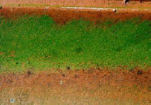 Figur 7.1: Bakterier omfatter ca. 1700 arter fordelt på godt 100 slægter. De optræder overalt: i jord, vand og luft samt i og på mennesker, dyr og planter. På grund af deres ringe størrelse spredes de let gennem luften. Ofte findes de i store mængder - en frugtbar jord kan indeholde ca. 1 milliard celler pr. g jord, heraf er dog max 10% af bakterierne levende. Bakterierne kan leve enkeltvis eller samle sig i kolonier eller danne film henover en overflade. Ifølge litteraturen kan der vokse bakterier på tag- og murflader, som muligvis kan danne næring for andre organismer. Bakteriebelægninger er ikke synlige. (Bakterier er ikke medtaget i nøgle og er ikke illustreret). Ordet alger anvendes om en række forskellige organismer, der er meget forskellige i udseende og levevis. De fleste kender alger som tang, der driver ind på stranden eller "vandblomster" på søerne. Det kan være store flercellede organismer eller encellede organismer beslægtet med bakterier, andre har fællestræk med svampe og atter andre må formodes at være stamform til højere planter. Algerne udfører fotosyntese ved hjælp af chlorofyl. Vi kender alger som knyttet til vandmiljøet, men nogle mikroskopiske alger optræder i og på jord, mens andre lever som luftalger, f.eks. på fugtige klipper og træstammer. Det er disse luftalger, der kan etablere sig på tage og facader under særlige forhold. Algerne omfatter 25.000 arter fordelt på 2000 forskellige slægter. Nogle alger kan tåle ekstreme forhold og variation i temperatur, fugtighed osv. Alger på tag- og murflader vil ofte tilhøre gruppen af grønalger og danne udbredte grønne belægninger. Algebelægninger kan dog også være rødlige til brunsorte.