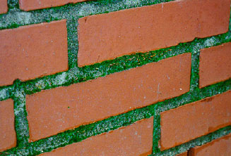 Figur 7.5: Foruden mosser kan nævnes ulvefodsplanter, padderokker og bregner, som også er sporeplanter. Men disse forekommer så sjældent på almindeligt murværk og tage, at de ikke vil blive behandlet yderligere i projektet. På historiske bygningsmonumenter ses dog bevoksning af f.eks. bregnen Engelsød. (Andre sporeplanter er ikke medtaget i nøgle og er ikke illustreret). Dette projekt omhandler ikke højere planter, og derfor skal det blot nævnes her som et kuriosum, at højere planter kan etablere sig hvor som helst, hvor der er næring, fugt og tilstrækkeligt lys - også på tage og murværk. Således kan der gro birketræer, mælkebøtter o. lign ud af revner og sprækker på bygninger, hvis forholdene er hertil og væksterne ikke bliver fjernet. Rødderne vil da søge ind i alle sprækker og revner og udvide disse. (Højere planter er ikke medtaget i nøgle og er ikke illustreret) 7.2 Typer af vækstProjektet har givet et grundigt kendskab til hvilke organismer, der bevokser murværk, tegl og betontagsten. Der er udarbejdet et farvekatalog, der beskriver de identificerede arter. Derudover indeholder kataloget nøgler, der kan anvendes til identifikation af organismerne. Arbejdet med identifikation af de forskellige organismer har afsløret en særdeles stor artsrigdom på et relativt lille materiale. Ved arbejdet er dog også konstateret, at de mest almindelige arter med størst dækningsgrad blev gengangere, hvilket betyder at kataloget efter vort skøn vil være et brugbart redskab fremover. En så omfattende undersøgelse over hvilke organismer vi finder på danske materialer har ikke eksisteret tidligere. Undersøgelsen skønnes endvidere at have europæisk interesse. Der er identificeret 26 arter af laver, 5 arter af alger, 8 arter af mosser og 3 arter af svampe. Projektet har som tidligere beskrevet taget udgangspunkt i de eksempler på vækst, der er fundet i projektforløbet. Prioriteringen af hvilke undersøgelser og sammenhænge, der skulle ske fordybelse i, har således delvist været styret af hvilke kombinationer af vækst og materiale vi har fået mulighed for at undersøge nærmere. Det viste sig hurtigt i projektforløbet at være nemmere at få lov til at udskifte bevoksede tagsten med nye end at udtage mursten, mørtel og pudsoverflader fra murværk. Projektet har derfor fået fokus på de organismer som kan vokse på tagsten. For en lang række af organismerne gælder det dog, at de også er identificeret på murværk, og der er ingen grund til at mene, at viden hentet fra undersøgelser af tagsten ikke i stor udstrækning kan overføres til murværk. Da der ikke er konstateret svampe på tagstenene har undersøgelser af svampe dog kun fået en beskeden andel af projektet. Svampe er især konstateret på malede og pudsede facader, hvorfra det i indeværende projekt kun har været muligt at få enkelte prøver til nærmere undersøgelse. Derfor er der i følgende afsnit draget meget få konklusioner vedr. afgørende parametre for svampe. De alger, der findes på murværk, tegl- og betontagsten, tilhører gruppen af luftalger, dvs. de spredes via luften. Der synes at være en tendens til at endolithiske laver (organismer vokser ned i stensubstratet) under normale forhold foretrækker beton og mørtel og ikke i samme grad trives på rødt tegl. Teorien er dog usikker, da vurderingen af om Physcia caesia - en på tegl almindeligt forekommende lav - er epilithisk (organismen vokser oven på stensubstratet), er foretaget på baggrund af et enkelt tyndslib. Teorien bør undersøges nærmere ved fremtidige undersøgelser af begroede materialer. Det øgede kendskab til hvilke organismer, der bevokser murværk, tegl og betontagsten, øger forudsætningen for at forstå: