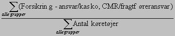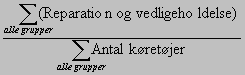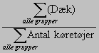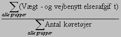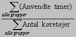 Da kapacitetsudnyttelsen er angivet ved et interval for de enkelte grupper, anvendes intervallets midtpunkt som værdi i beregningen. For en kapacitetsudnyttelse på 76-85% anvendes værdien 80%. Resultatet bliver et procent-tal. Kapacitetsudnyttelsen er angivet i intervaller for de enkelte grupper, men i benchmarkingen angives det som absolutte værdier. For intervallet 96-100% anvendes værdien 98%. Det gennemsnitlige antal kilometer pr køretøj beregnes ved: