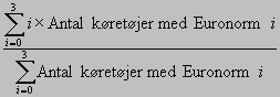 Denne værdi er uafhængig af antal køretøjer. Udslip af CO2 beregnes på baggrund af dieselforbruget pr. km. Ved forbrænding af 1 liter diesel udledes ca. 2.646 gram CO2. Gennemsnitlig EuronormGennemsnitlig Euronorm beregnes som