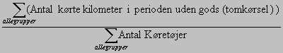 Det gennemsnitlige antal kilometer uden gods (tomkørsel) pr. køretøj beregnes ved: