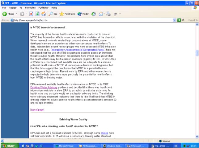Risikovurdering af MTBE-forurening i forhold til grundvandet - bilagsrapport
