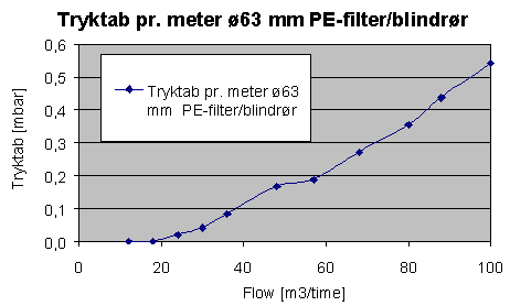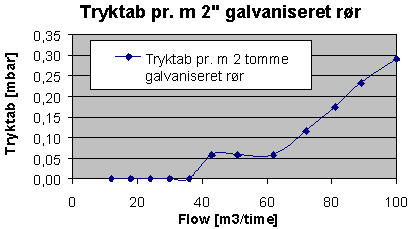 maksimale flow på 15 m3/time, ikke kan registreres et tryktab pr. meter rør
