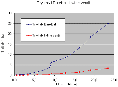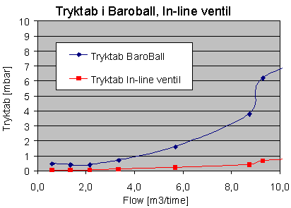 maksimale flow på 15 m3/time, ikke kan registreres et tryktab på den første